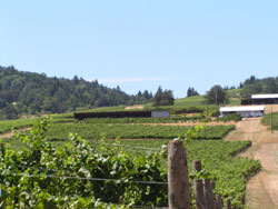 【ヴィンヤード】最初にこの土地を見たときに、彼は“宝くじに当たった!”と思ったそうです。畑の西側に位置する山が雨や雲を南北に切り分け、この土地にいつも日差しをもたらしてくれるのです。海抜もこのヴィンヤードにとって最高でした。ウィラメット・ヴァレーを渡る霧の上に位置し、しかも完熟を妨げる、強い風が吹くラインよりも下にあるのです。傾斜もなだらかに南東に下り、冷たい風が下方に流れ、ブドウの木に霜が付くのを防いでくれます。土壌は水はけのとても良い赤煉瓦質の土です。この土壌は雨水を早く吸収するのでブドウの樹が水に浸ってしまうことがありません。現在、合計126エーカーにピノ・ノワールが植えられており、7種類の異なるクローンが6種類の異なるルートストック(根)に接ぎ木されています。気候の状況によりますが、通常4月に発芽し、9月の終わりから10月のはじめに収穫を行います。ベントン・レーンの環境適応型ヴィンヤードの実践は国際的な基準L.I.V.E.(Low Input Viticulture and Enology)プログラムに準拠しており、またこの地域が推進する分水嶺管理プログラムであるサーモン・セーフ(Salmon-Safe)プログラムの承認も受けています。たいへん環境に優しいヴィンヤードといえます。 |