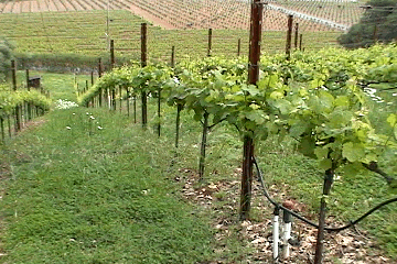 手入れの行き届いたヴィンヤードには斜面に沿ってシラーが東西の方向に植えられています。 |
