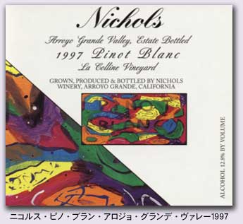 ニコルス ピノ・ブラン アロヨ・グランデ・ヴァレー ラ・コリン・ヴィンヤード 1997 サン・ルイ・オビスポとオセアナの間に位置するアロヨ・グランデ・ヴァレー・アペレーションは冷たい海風が吹き付け、霧の多い冷涼な気候です。この気候とすばらしい土壌の相乗効果により世界的に有名なワイン産地となっています。 ニコルスのピノ・ブランはラ・コリン・ヴィンヤードから収穫されたブドウを用いアリエ産のフレンチオークで11ヶ月熟成させています。その後、ボトル詰されてから9ヶ月間、ボトル内での熟成をゆっくりとすることによりワインに丸みと自然の果実のフレーバーとアロマを与えます。聡明ではじけるような印象のこのワインはたいへん魅力的なテクスチャーを持ち、凝縮された果実味があります。トロピカル・フルーツ、燻したような芳ばしさ、スパイス、キャラメル、ヴァニラといった様々なフレーバーが重なり合って喉をうるおし余韻が楽しいワインです。フレンチオーク樽で醗酵後、100%マロラクティック醗酵。