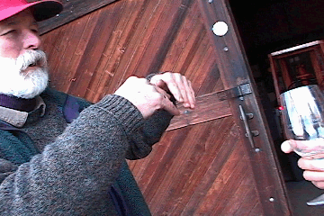 1999年ヴィンテージのカベルネ・ソービニョンを注いでくれるステュアート。まだ若いタンニンだが柔らかな香りの立ち上がりと果実身の濃さ、余韻の長さが印象的。枯れた感じのCSが好きな当ウェブサイト管理人は10年後に飲んでみたいと夢想したのでした。 |